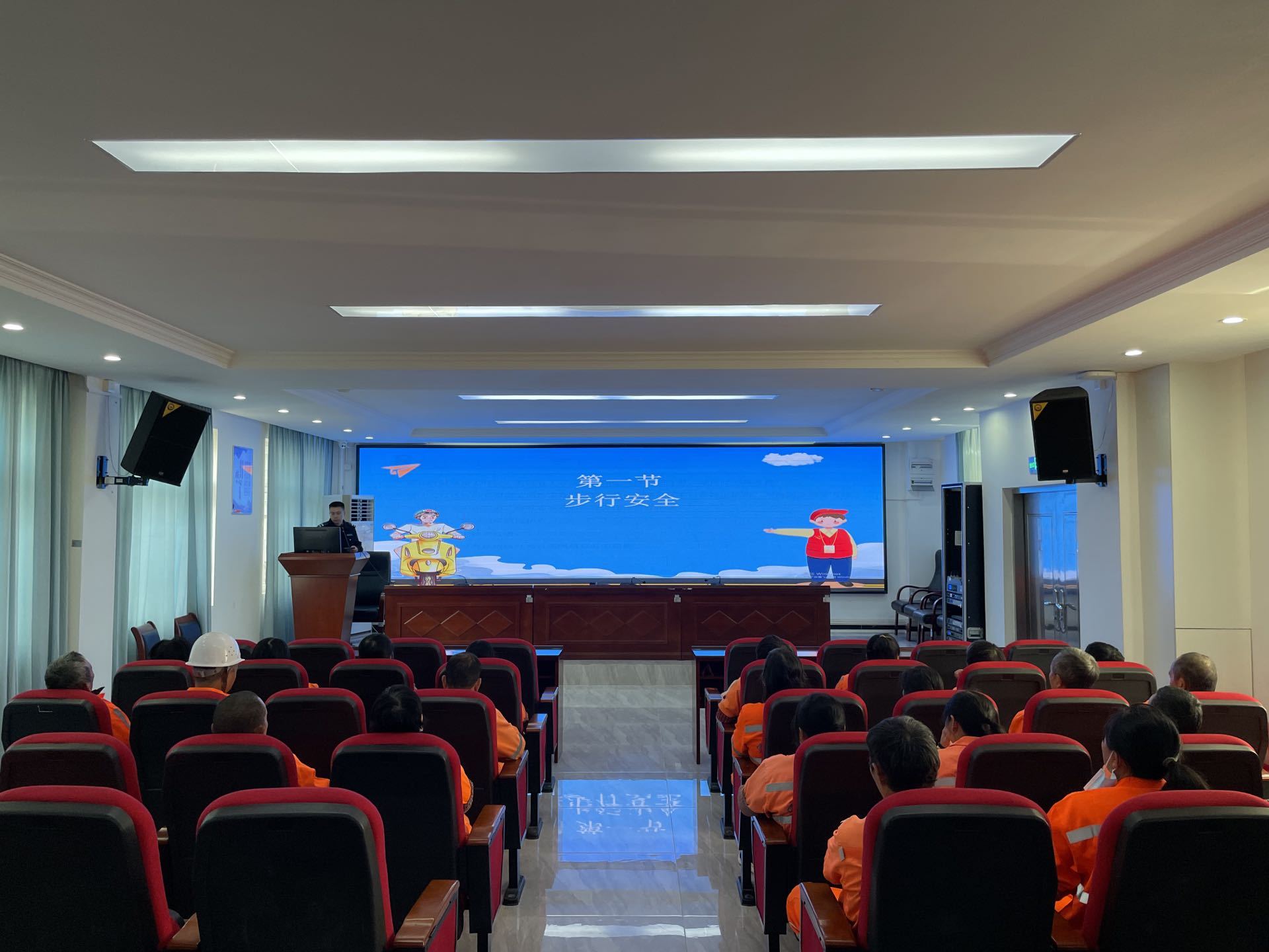 活动中,民警采用PPT讲解的形式,用通俗易懂的语言为企业员工们讲解交通安全知识和冬季出行的注意事项,提醒员工们在骑乘“摩电”时,要正确佩戴安全头盔,杜绝逆向行驶、闯红灯等违法行为。